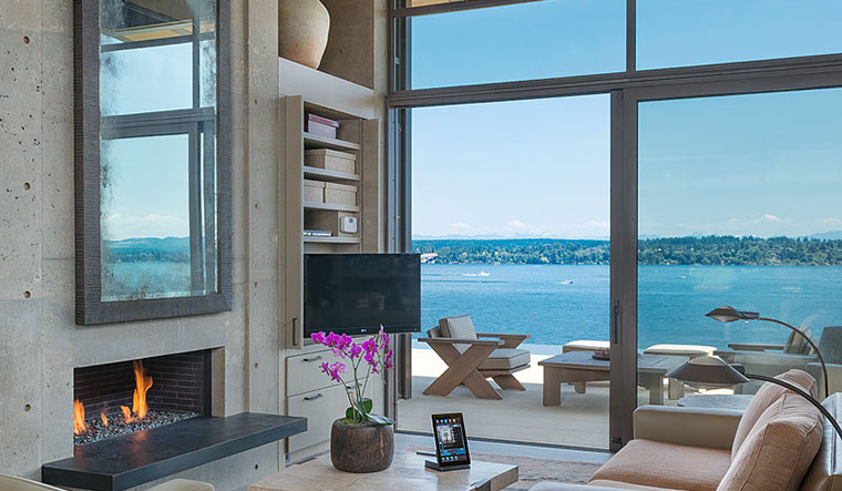 This exceptional home challenged our design team in the beginning. The construction of this home provided no clear way to extend the wiring from the walls to the ceiling, so we needed to create raceways during the foundation phase in order to run the wiring from point A to B. The home was also constructed of mostly steel, glass and concrete which challenged our technicians as well. The end result of this project was an award winning home with the latest technology. The home is outfitted with a Savant Home Automation System which handles the Audio, Video, Lighting, Security, Electronic Shading, Electronic Motorized Windows, Fireplaces, and Golf Simulator!